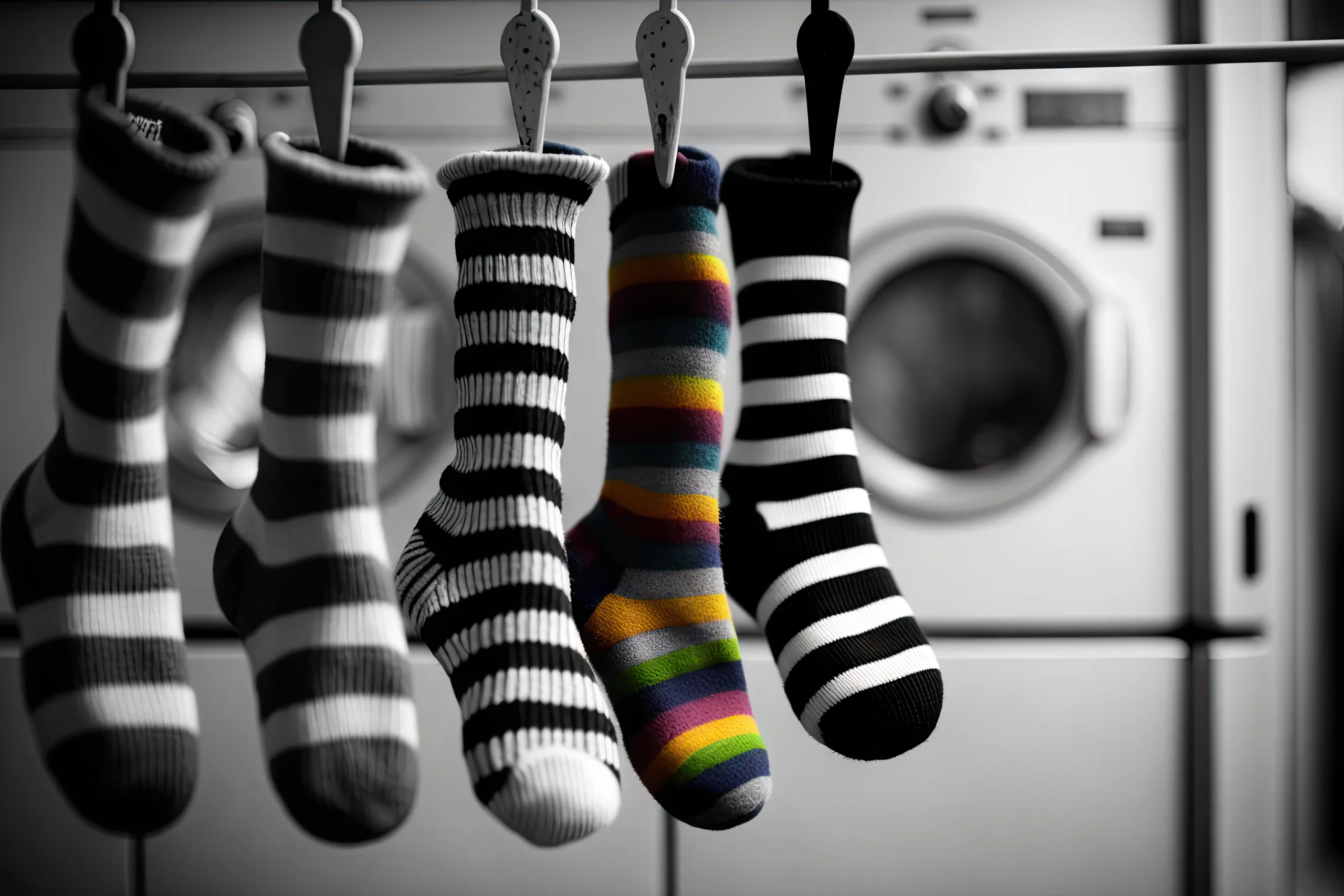 hanging on ropes set of socks in wardrobe, created with generative ai