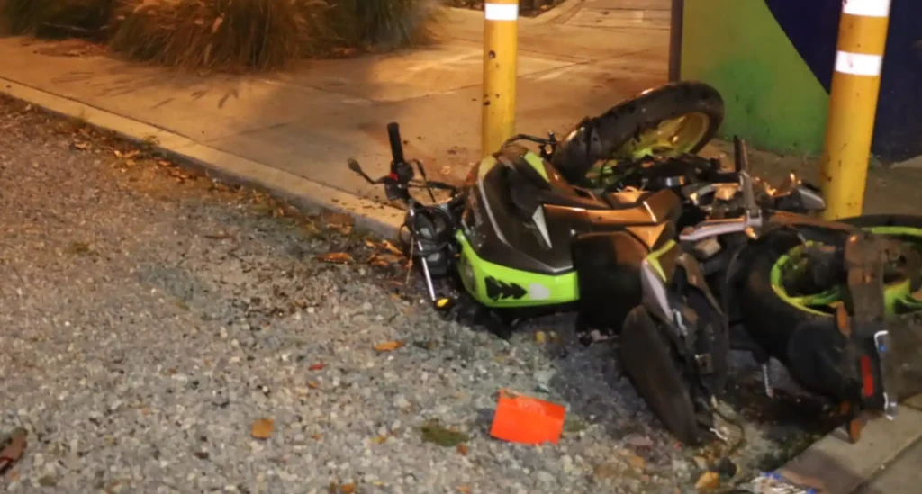 Información preliminar señala que el conductor de la motocicleta perdió el control del vehículo y terminó chocando contra los parales instalados en el arriate central de la vía.